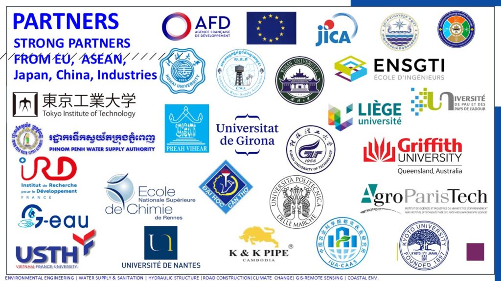 NATIONAL: Mekong River Commission, Tonle Sap Authority, K&K Pipe Cambodia, Comin Khmere Co., Ltd, Muhibbah Engineering Co., Ltd, KÔSAN Eng., French Red Cross, GRET, MAEDA, ILI Consultants, APSARA Authority, Preah Vihea Authority, Ministry of Water Resources and Meteorology, Ministry of Rural Development; Ministry of Industry, Mine, and Energy, Ministry of Public Works and Transportation; Phnom Penh Water Supply Authority, CARDI, CAVAC, DBD, CEMP.
