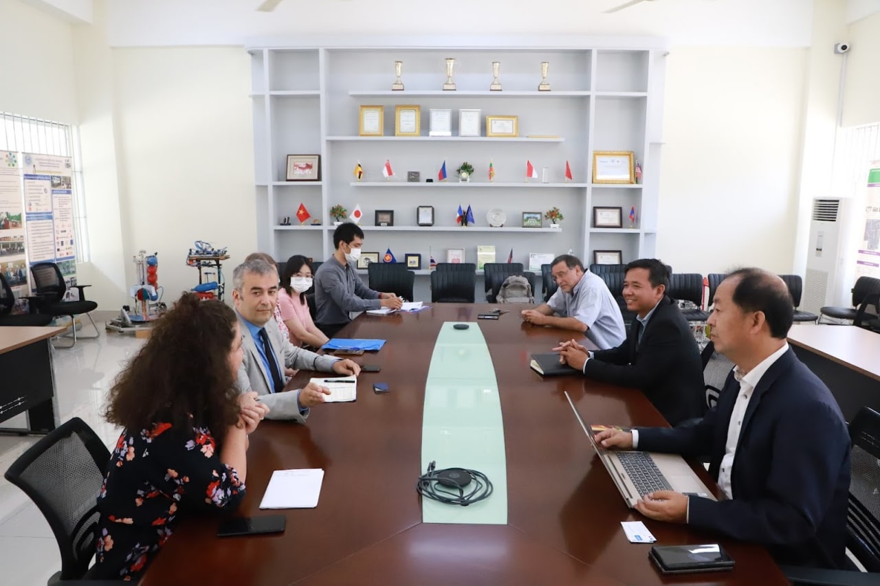 (ITC-Phnom Penh)៖ នាព្រឹកថ្ងៃសុក្រ ១៣កើត ខែពិសាខ ឆ្នាំខាល ចត្វាស័កព.ស.២៥៦៥ ត្រូវនឹងថ្ងៃទី១៣ ខែឧសភា ឆ្នាំ២០២២ ឯកឧត្តមបណ្ឌិត ប៉ូ គឹមថូ បានទទួលជួបគណៈប្រតិភូមកពីវិទ្យាស្ថានបារាំងនៅកម្ពុជា ដឹកនាំដោយលោក Valentin Rodriguez អនុព័ន្ធវប្បធម៌នៃស្ថានទូតបារាំងប្រចាំនៅកម្ពុជា និងជានាយករងវិទ្យាស្ថានបារាំងកម្ពុជា(Institut Français au Cambodge-IFC) បានអញ្ជើញមកធ្វើទស្សនកិច្ចនៅវិទ្យាស្ថានបច្ចេកវិទ្យាកម្ពុជា (ITC)។