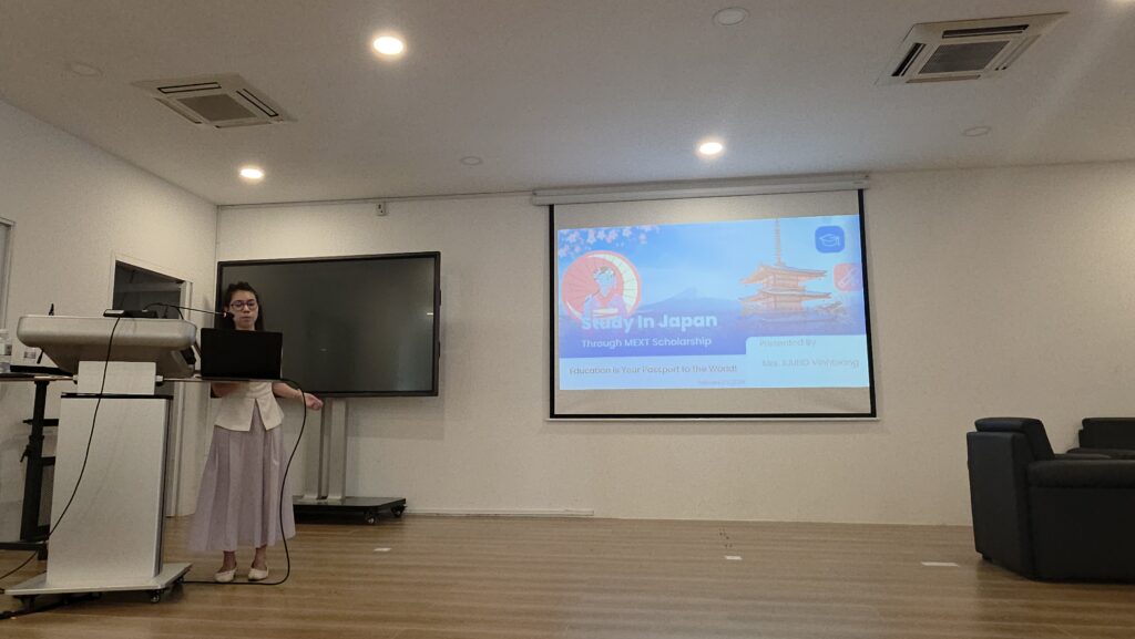 4. Ms. Kaing Vinhteang: Shared expert advice and personal experiences regarding the prestigious MEXT Scholarship (Japanese Government) application through Embassy and University recommend.