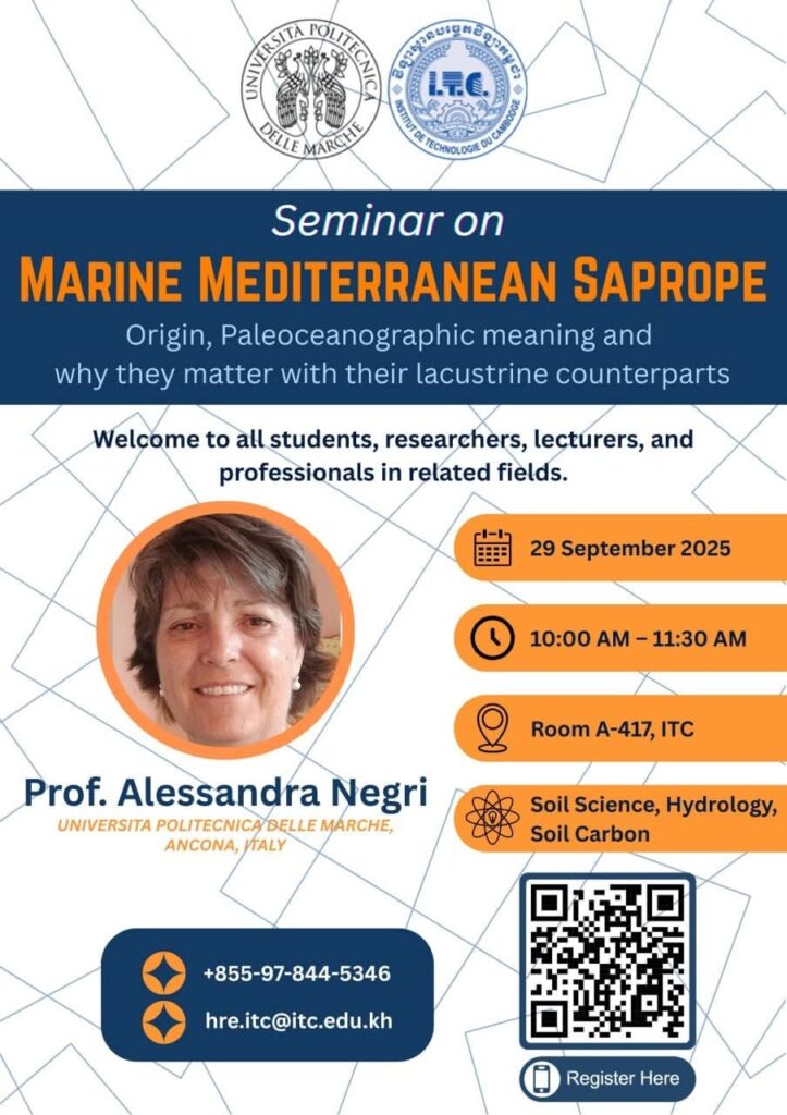 A big thank you to Prof. Alessandra Negri from the Università Politecnica Delle Marche for her fantastic seminar on “Marine Mediterranean Sapropel.” We had an interesting discussion about sapropel deposits and how they might relate to Tonle Sap Lake, sparking ideas for a new joint research project.